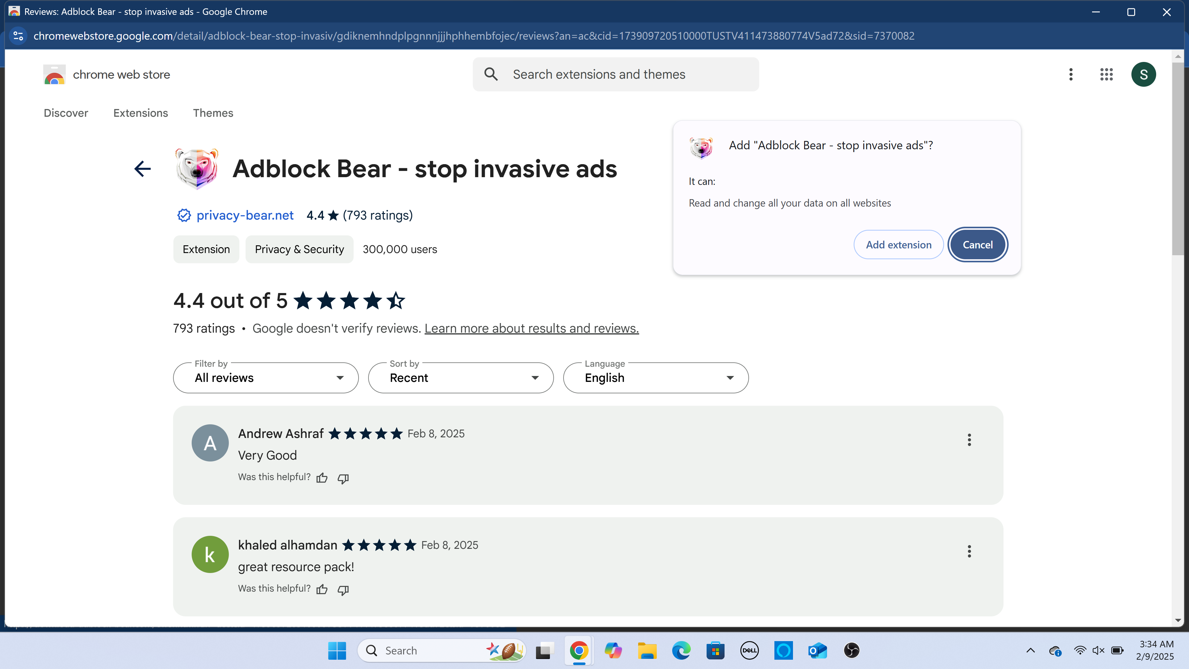 Adblock Bear, also known as Adblock Bear – stop invasive ads by privacy-bear.net, is a potentially unwanted program (PUP) marketed as a privacy-focused ad blocker for Google Chrome. While it claims to protect users from invasive ads and trackers, it is distributed through suspicious networks and exhibits behavior similar to known adware. Adblock Bear requests extensive permissions, allowing it to read and change data on all websites, which raises privacy concerns.