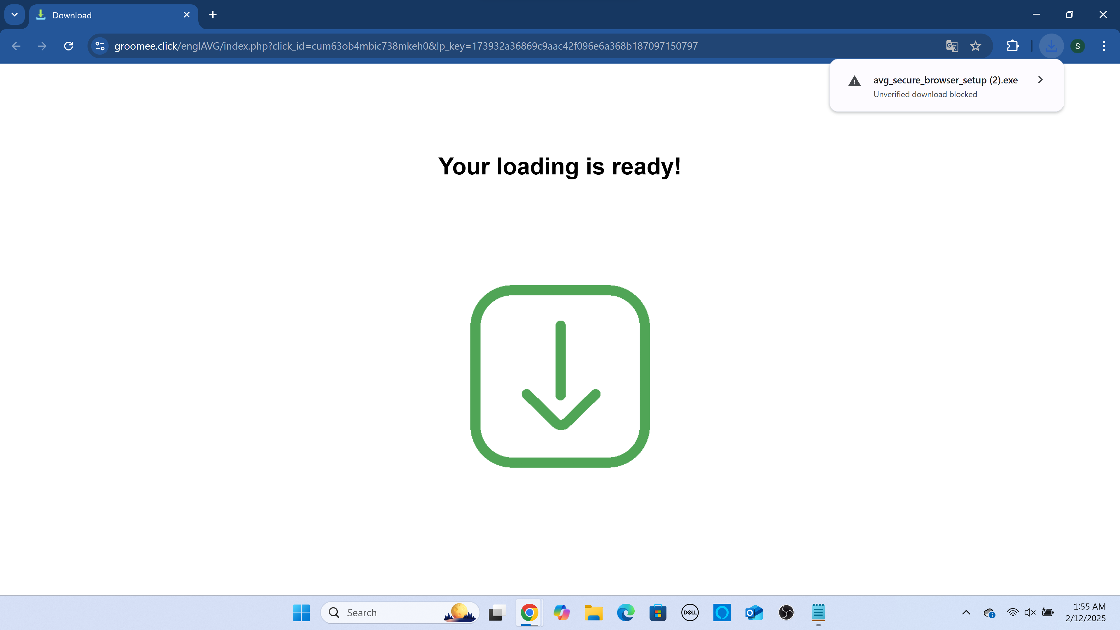 The groomee.click virus is not a traditional virus but a deceptive webpage that promotes and downloads various files, including potentially unwanted programs (PUPs) and legitimate software like AVG Secure Browser. Users typically encounter groomee.click through redirects from risky websites such as free streaming services, torrent sites, or other high-risk platforms. One of the most concerning aspects of this site is that it can automatically download files without your explicit consent. Simply visiting the page or clicking anywhere on it can trigger a download.